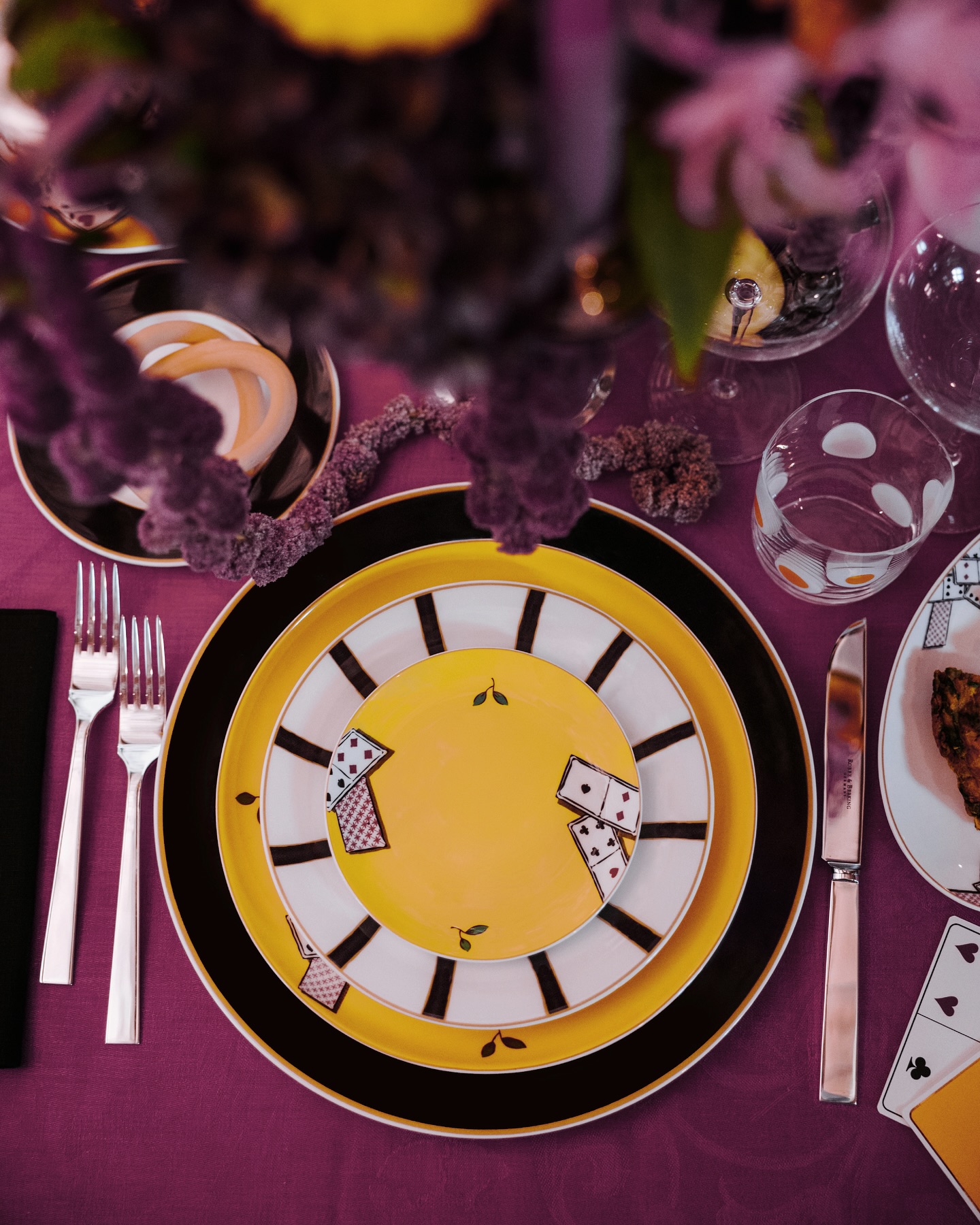 Коллекция «Carte da Zogo» Geminiano Cozzi Venezia 1765 передает яркую душу XVIII века, когда Венеция стала центром игр и встреч представителей разных социальных слоев. Теплый желтый фон, украшенный игральными картами и красочными бабочками, рассказывает историю эпохи, когда игра символизировала соревнование, вызов и единение, а тарелки рассказывают истории, полные страсти и интриг.