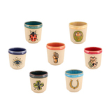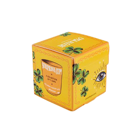Коллекция состоит из семи керамических чашек-стаканчиков объемом 70 мл— семи символов удачи. Но при покупке никто не знает, что внутри: каждая чашечка упакована в коробку с защитой от несанкционированного доступа, чтобы вы не могли заранее узнать, какой амулет получите